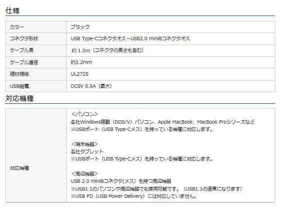サンワサプライ USB2.0 Type C-miniB ケーブル (ブラック・1m) KU-CMB10【メーカー直送】代引き・銀行振込前払い・同梱不可