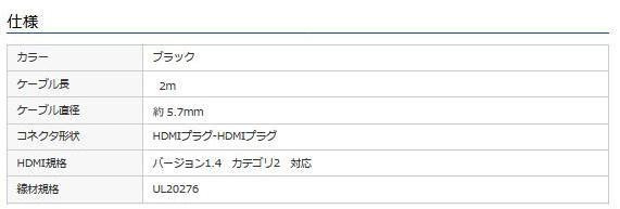 | 仕様 | 対応機器:HDMI端子(HDMIタイプAメス)を持つ機器 |