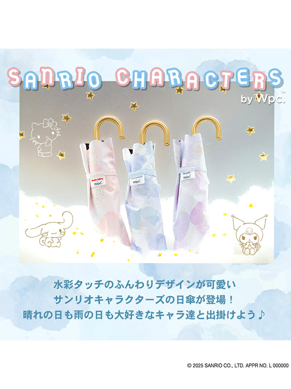 Wpc 日傘 折りたたみ 完全遮光 晴雨兼用 キティちゃん シナモンロール クロミ 傘 日傘 折りたたみ 遮光 可愛い サンリオキャラクターズ 水彩モチーフ 801-SA25-102