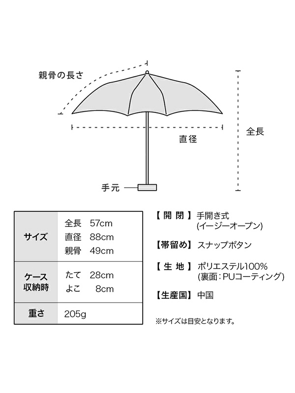 サイズ(cm)/全長/直径/親骨/重量(g)