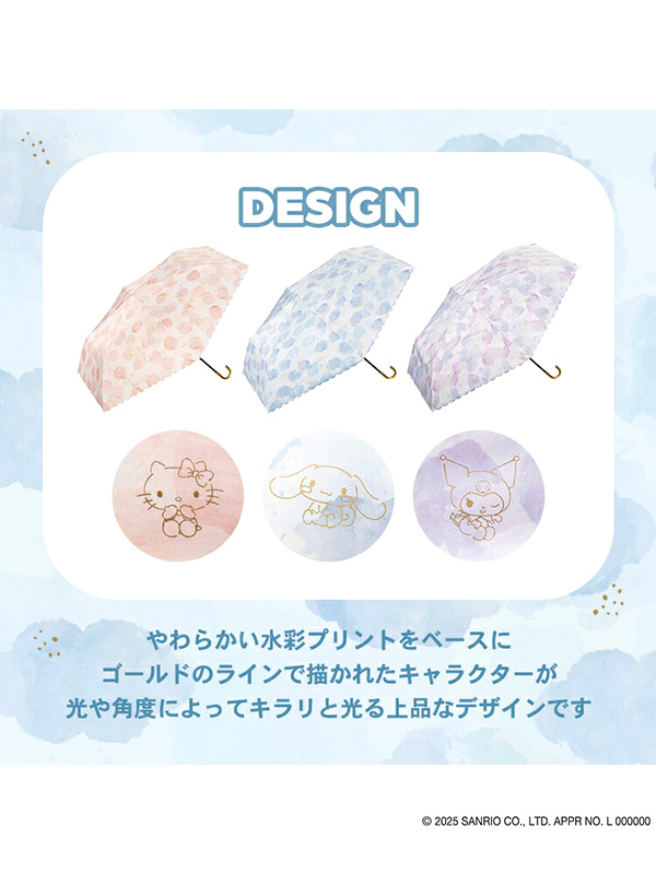 ハローキティ、シナモロール、クロミがかわいい水彩モチーフの折りたたみ日傘に!