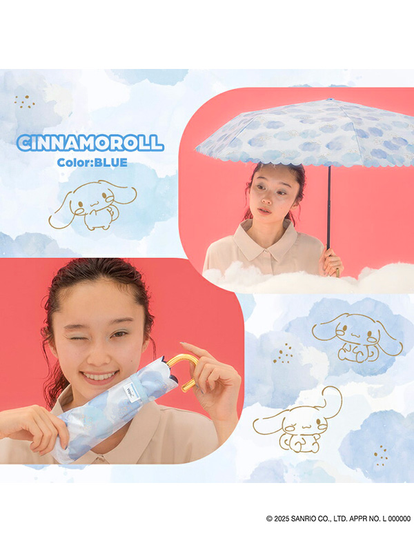 淡いパステルカラーとスカラップのフチがポイント!大人可愛いサンリオキャラクターズの折りたたみ日傘♪