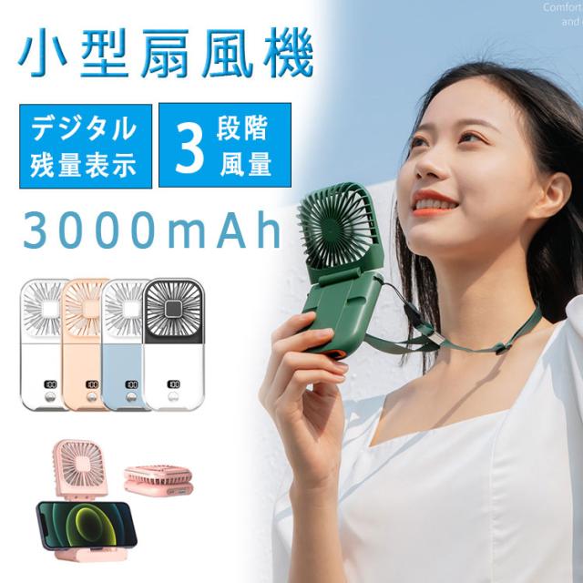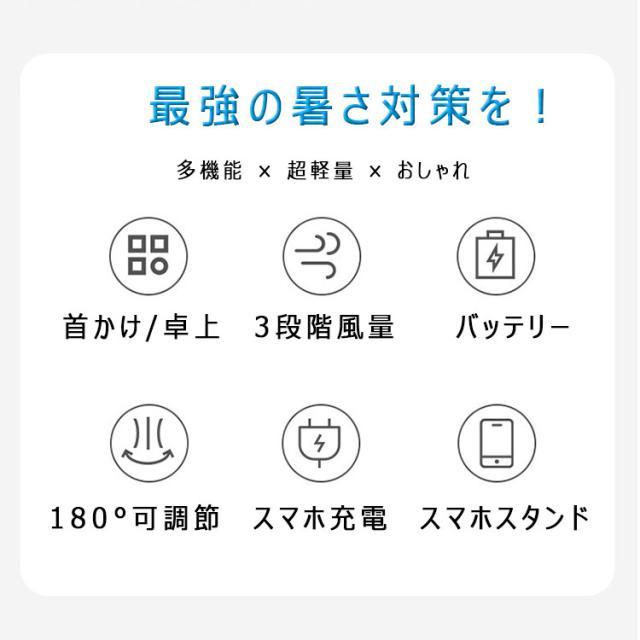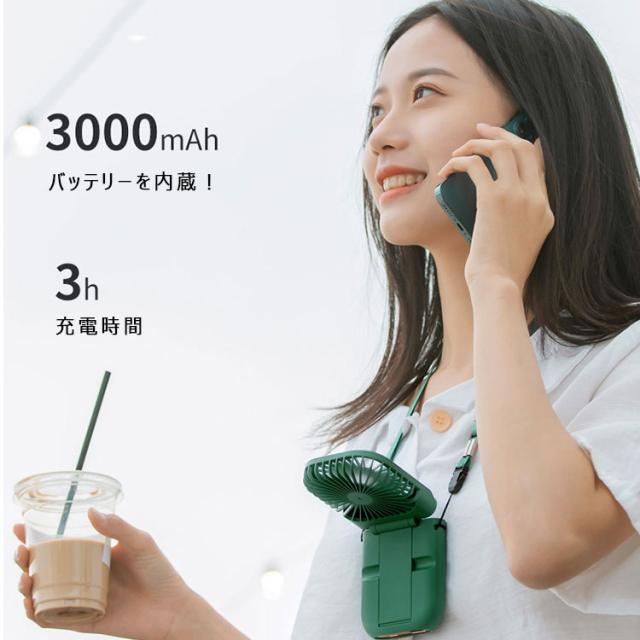 扇風機 首かけ 2025 最新モデル 軽量 長時間 ハンズフリー 折りたたみ 卓上 静音 7枚羽 首掛けファン モバイルバッテリー機能付き 3000mAh バッテリー残量表示 PSE認証済み スマホスタンド付き ポータブル クーラー かわいい おしゃれ シンプル