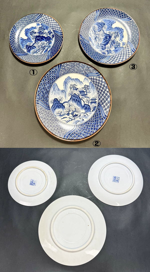 【送料無料】有田焼 マル美窯謹製 五宝の絵皿 3枚 大皿 小皿 深皿 セット 菓子器 焼物 入手困難 骨董 日本古玩 (旧家蔵出し) 威龍彩雲通販