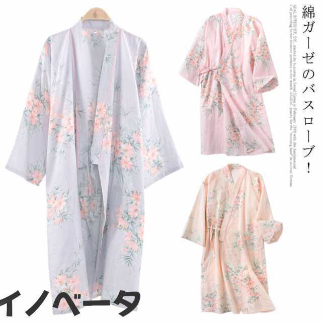 バスローブ レディース 綿 ガーゼ ガウン 浴衣 コットン 和風 パジャマ お風呂上り 部屋着 おしゃれ 花柄 ルームウェア 寝巻き 寝間着 薄手 軽量 吸水 速乾 通気性抜群 ガーゼバスローブ ワンピース ギフト 贈り物 プレゼント オールシーズン 送料無料