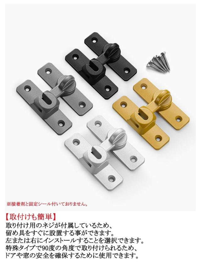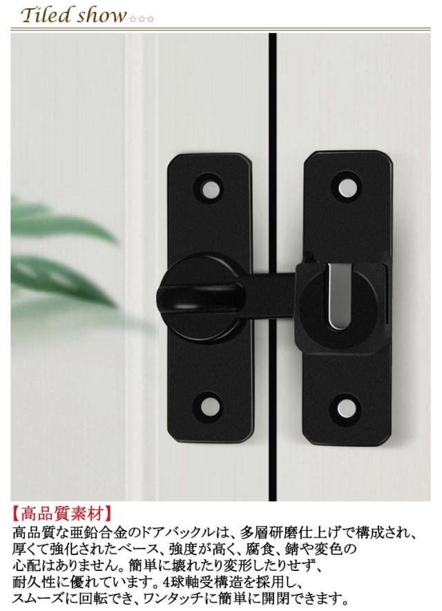ドアロック 取り付け簡単 フリップラッチロック 引き戸 後付け ドアバックル 90度/180度兼用 回転式 亜鉛合金 穴あけ不要 後付け ドア留め金ロック 引き戸 スライディングドア 引き戸 鍵 ロック 耐震ラッチ 防犯 部屋 窓 玄関用