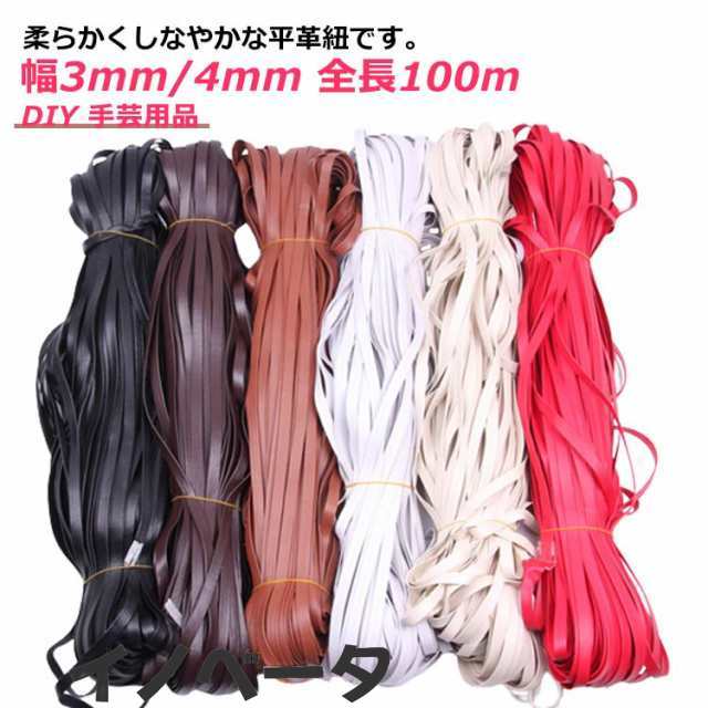 革紐 革ひも 全長100m 幅3mm 幅4mm 平革紐 レース レザーコード レザークラフト しなやか 丈夫 PUレザー 合皮 皮紐 ハンドメイド 材料 革小物 DIY 手芸用品 手芸材料 バッグ 持ち手 皮ひも 業務用 黒 茶色 白 送料無料