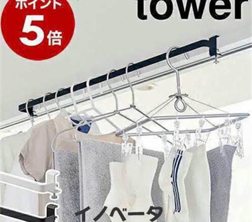 [ 室内物干しハンガーバー タワー ]山崎実業 tower 物干し竿 室内 部屋干し ハンガーラック 室内干し 洗濯物干し 干し竿 鴨居 窓 5619