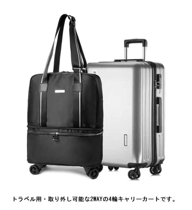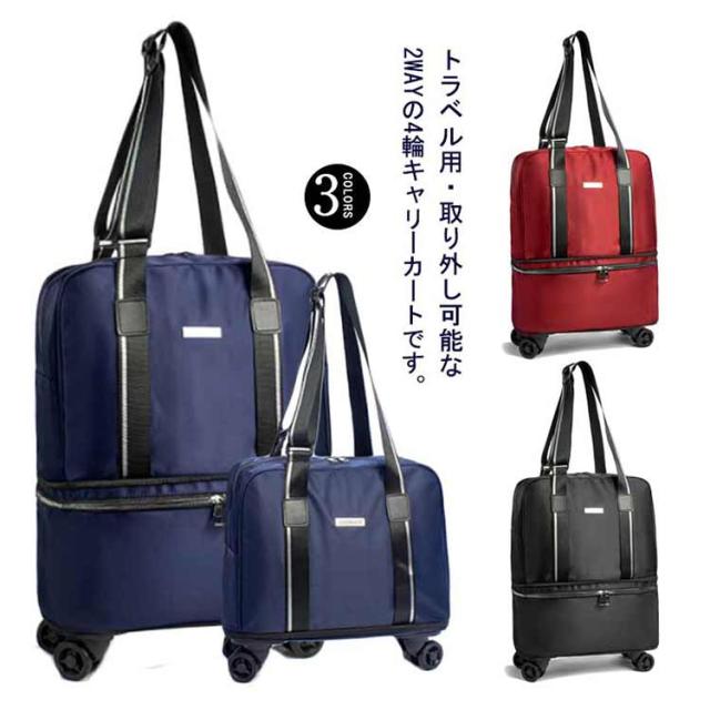 | 撥水加工されたオックスフォード生地を使用し、傷や摩耗に強い、霧や雨の日にも対応できる。 トラベル用・取り外し可能な2WAYの4輪キャリーカートです。 立体的で大容量のデザインは、服、財布、スマホや化粧品などを収納することができる。 携帯電話や傘、飲み物などを収納できるフロントとサイドの収納ポケットがある。 フレームは軽量かつ頑丈のアルミを採用し、自由に伸縮可能です。 | |