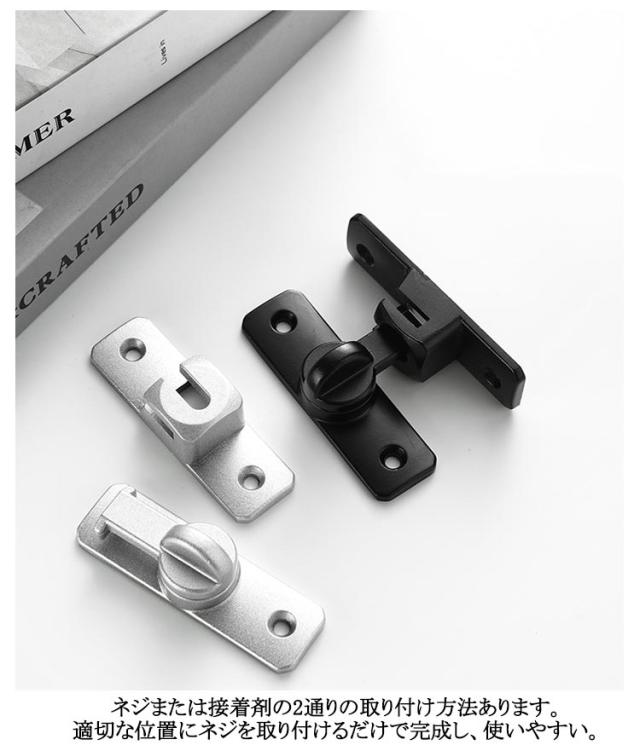 フリップラッチロック 引き戸 回転式 引き戸 ドアロック 兼用 亜鉛合金 鍵 ドア留め金ロック 90度/180度 ドアロック 後付け ドアバックル スライディングドア 後付け 鍵 ロック ドアバックル 防犯 窓 部屋 玄関用 後付け 鍵玄関ドア 鍵 シルバー ブラック グレー