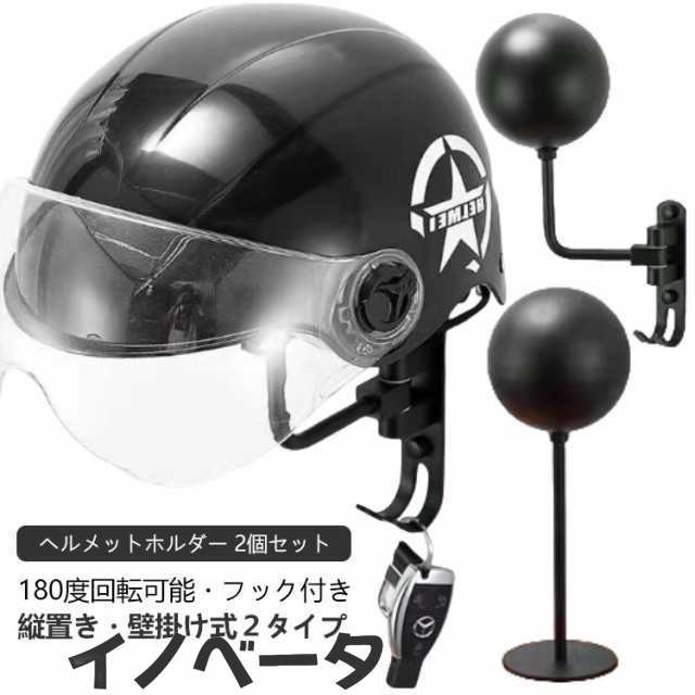 2個 ヘルメット ヘルメットスタンド ヘルメットハンガー 2個 180度回転可能 フック付き 壁掛け 縦置き 自立 ヘルメットホルダー ヘルメットラック ハットスタンド 帽子スタンド ハット 帽子 用 スタンド ハンガー ラック メタル