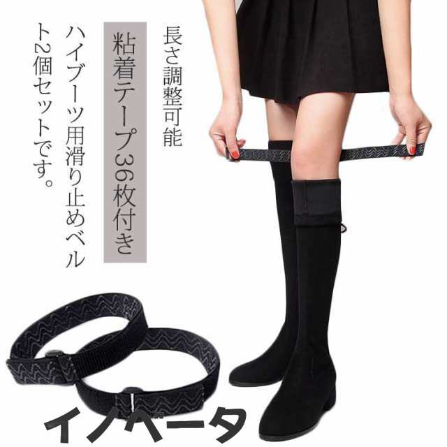 【送料無料】 2個セット ハイブーツ用 滑り止めベルト ロングブーツ ニーハイブーツ ずり落ち防止 たるみ防止 長さ調整可能 マジックテープ ブーツキープ ベルト 粘着テープ 取り付け簡単 見えない 隠す ズレ防止ベルト 粘着テープ36枚付き