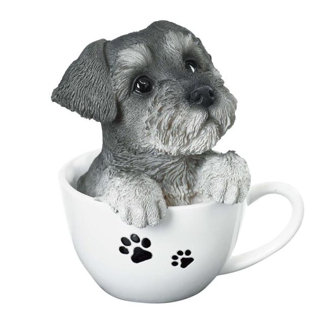 カップに入ったシュナウザーのオーナメント。お部屋の雰囲気を可愛らしくします。