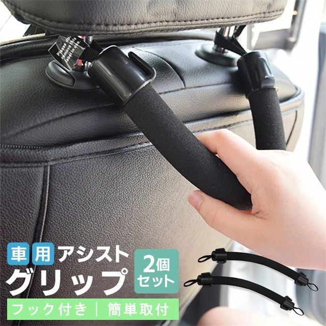 送料無料 春新作 アシストグリップ 2個セット 車 シートグリップ 手すり カーグリップ ソフト 握りやすい 持ち手 カンタン取付 安全 安心 車用品 汎用 フック付き 補助器具 負担軽減 後部座席 ヘッドレスト 乗車 降車 車椅子 車載
