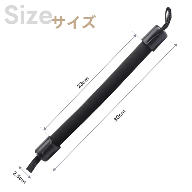 | 仕様 | ◆カラー:ブラック ◆サイズ:30*2.5cm ◆フック荷重:1kg ◆本体耐荷重:90kg ◆素材:EVA、ABS ◆商品内容:本体×2 |