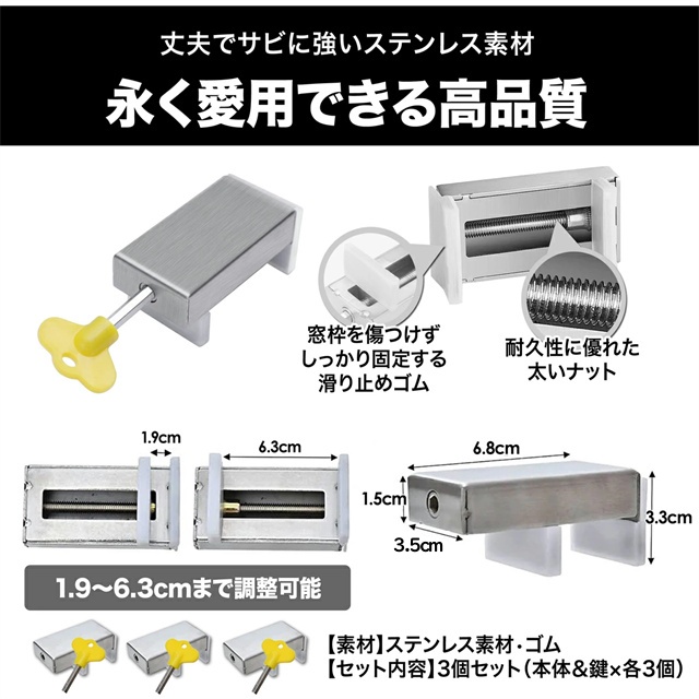 送料無料 冬新作 防犯 ロック 防犯グッズ 防犯対策 侵入防止 鍵 補助鍵 3個セット 窓ロック 窓用セーフティーロック 子ども 転落防止 脱走防止 鍵付き 窓ストッパー ストッパー 窓 調整可能 後付け簡単 家庭用 簡単設置 チャイルドロック