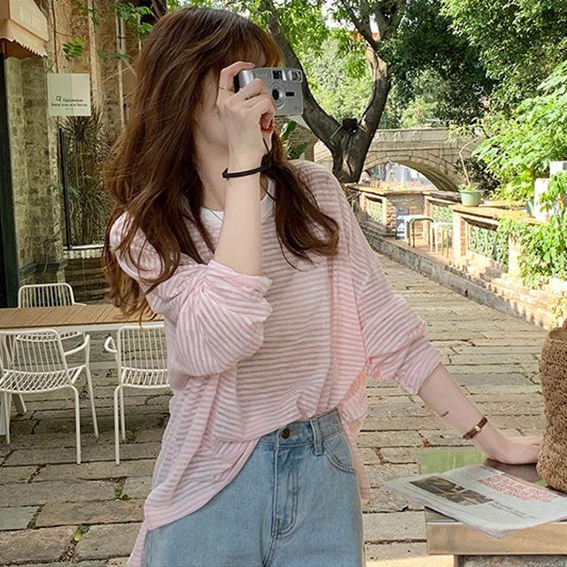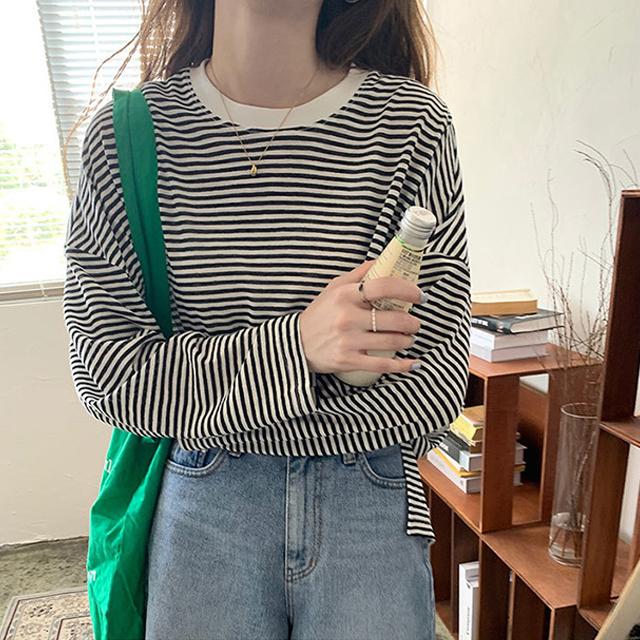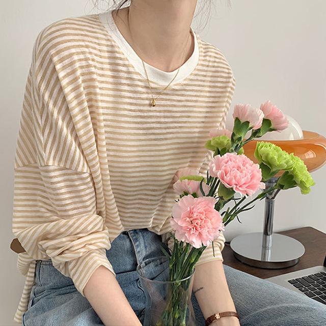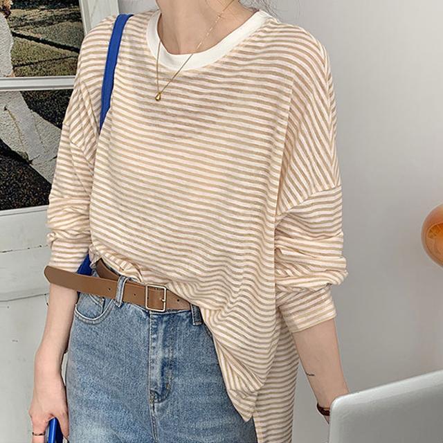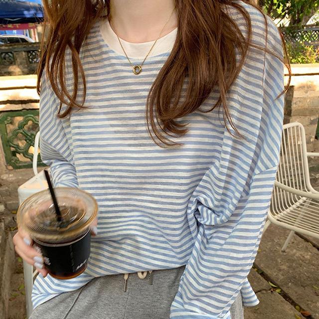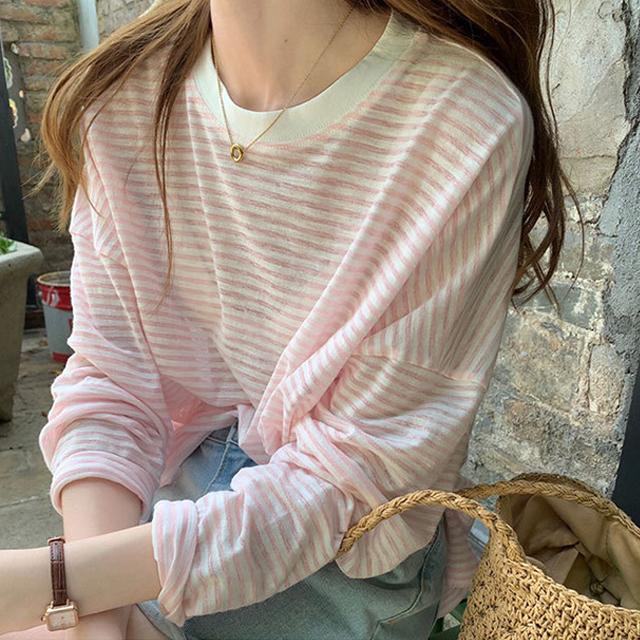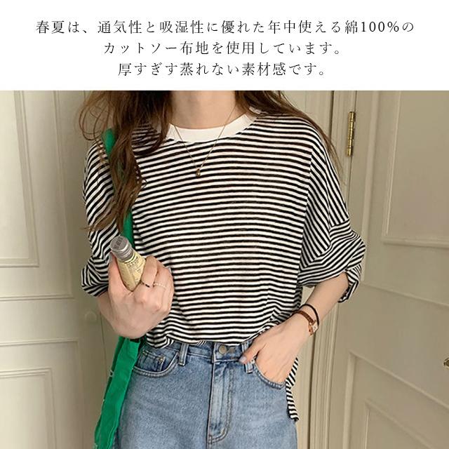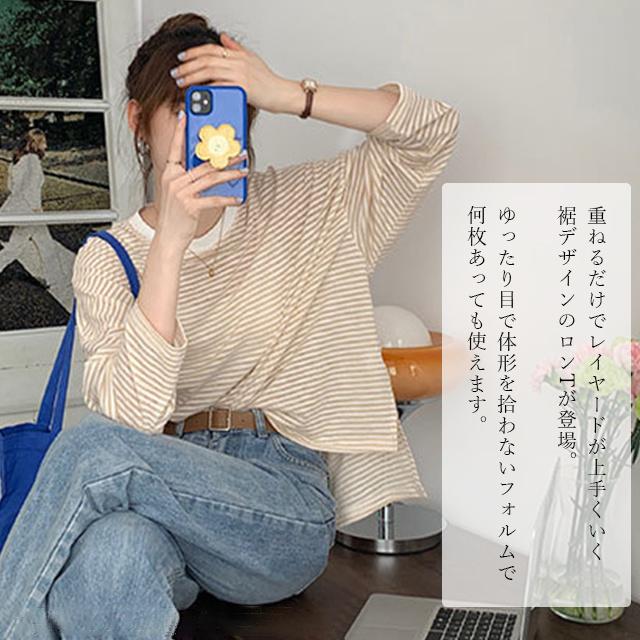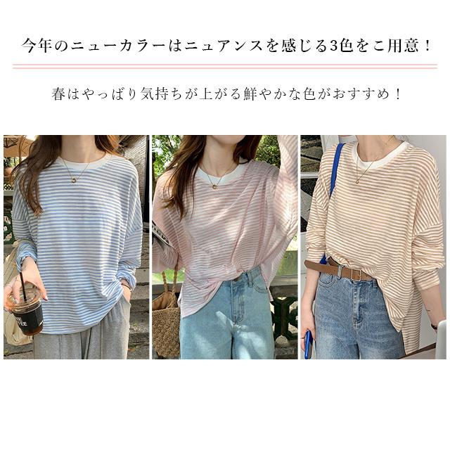 冬新作 送料無料 春夏 レディース 長袖 tシャツ カットソー 涼しい 吸汗速乾 ロンT ロンティー ロングティーシャツ ロングTシャツ コットン 薄手 綿100% 透け感 クルーネック ボーダー おしゃれ シンプル 重ね着 レイヤード 紫外線対策