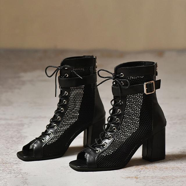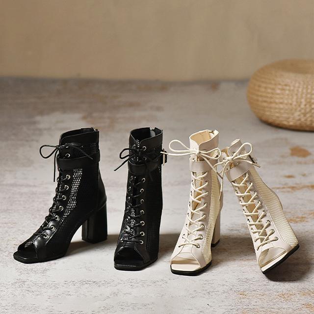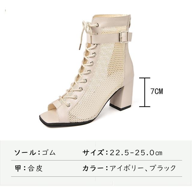 春新作 送料無料 レディース サンダル ショートブーツ サマーブーツ ブーツサンダル 7cm チャンキーヒール 透かし彫り ハイカット ミドルブーツ オープントゥ 太ヒール ハイヒール 厚底 歩きやすい 痛くない 通気 カジュアル 美脚効果
