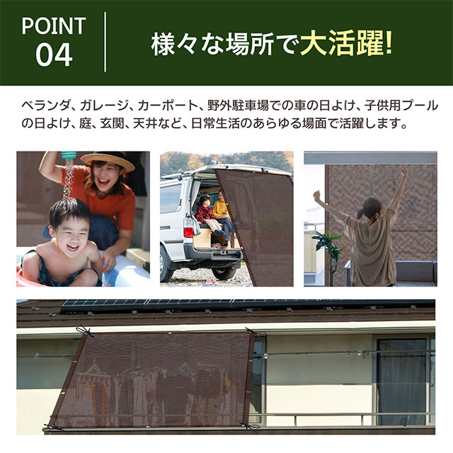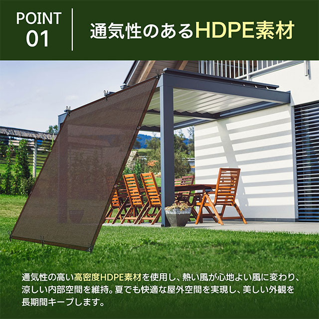 | 商品説明 | ◆【まるで魔法のような断熱効果】 オーニングサンシェードは、まるで太陽の熱から逃げ出す魔法の盾のようです。UVカット率約90%、遮光率約80%を誇り、直射日光の暑さから部屋を守ります。濃い色の遮光性の高いサンシェードを選ぶことで、部屋が少し暗くなるかもしれませんが、それがかえって涼しく感じられる二重の効果をもたらします。熱の侵入を大幅に軽減できるので、電気代の節約にもつながるのです。 ◆【風を自在に操る通気性】 日よけシェードは、まるで風を自在に操るマジシャンのように、通気性に優れています。透けて見えない高密度HDPE素材を使用し、熱い風を庭のシェードを通過させることで、涼しい風に変身させます。風通しの良いサンシェードは、シェードの内側を涼しく保ちます。まるで夏でも外で快適に過ごせる魔法の空間を作り出すかのようです。シェードの素材は形状記憶加工が施されているので、長年使っても変形や色あせに強く、美しい外観を保ち続けます。 ◆【取り付けは簡単、まるでパズルのように】 サンシェードには、錆びないハトメが14個付いています。付属の2本のひもを必要な長さにカットすれば、まるでパズルのピースを組み合わせるように、簡単に、安全に、自由自在にシェードを取り付けることができます。UVカットサンシェードは、中性洗剤と水で洗うだけで汚れが落ち、カビや色あせを防ぎ、長く使い続けることができます。使わない時は、まるで手品のようにコンパクトに折りたたんで収納できるのです。 |