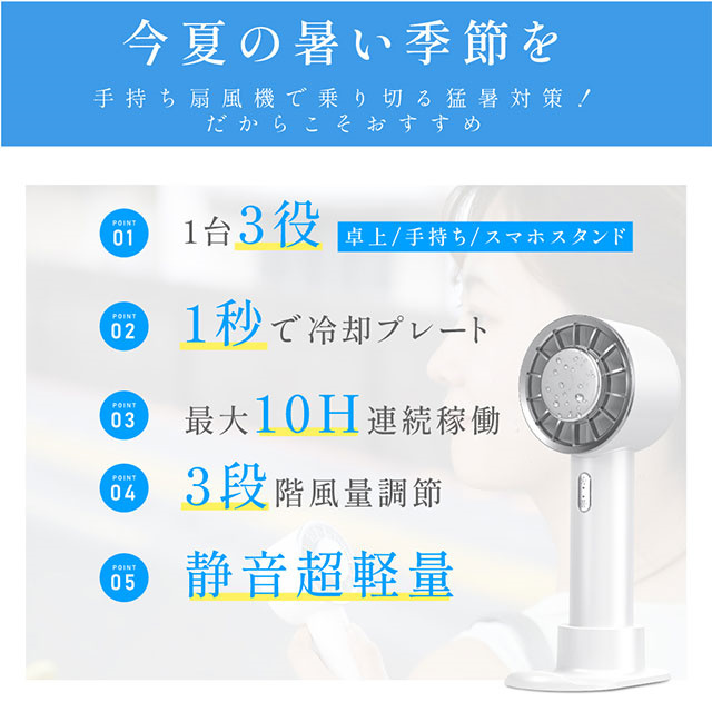 春新作 送料無料 ハンディ扇風機 手持ち扇風機 ミニ扇風機 冷却プレート 携帯扇風機 ハンディクーラー 扇風機 卓上 3段階風量 ポータブル USB充電 持ち運び ミニファン ハンディファン 熱中症対策 おしゃれ コンパクト 羽根なし