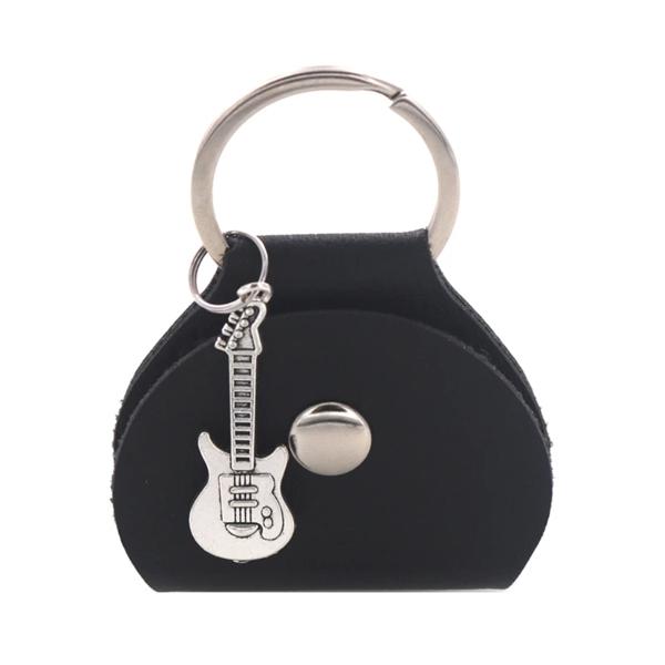 キーリングと小さなペンダント付きのpuレザーギターピックホルダーケース、ギタープレーヤーや音楽愛好家のためのピックバッグ