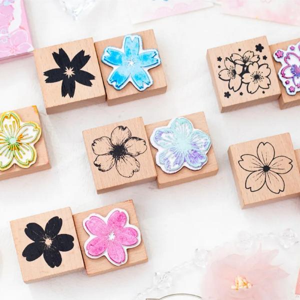 6 個花粒木材スタンプシール木材シリコーンスタンプスクラップブッキング用文房具シールスタンピング DIY クラフト装飾
