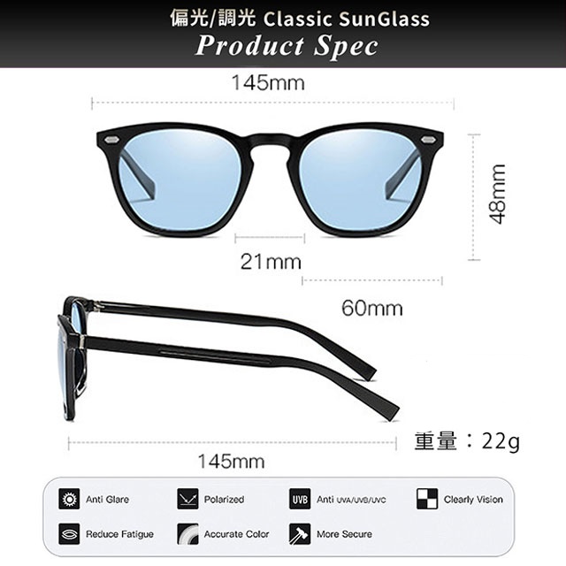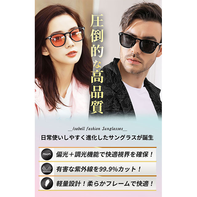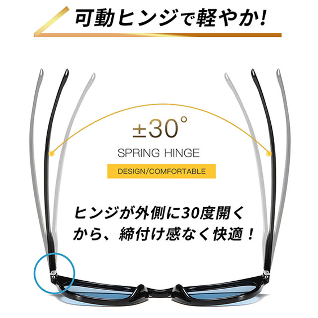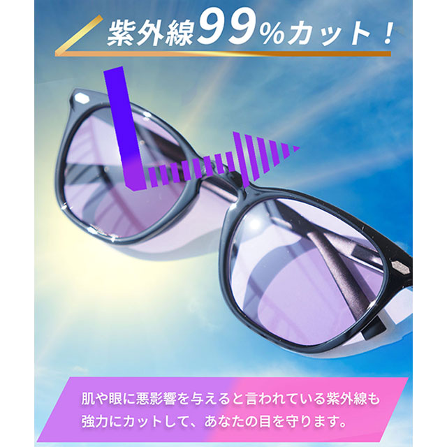 | 素材 | ◆フレーム材質:プラスチック ◆テンプル材質:プラスチック ◆レンズ材質:プラスチック(アクリル)※調光偏光レンズ |