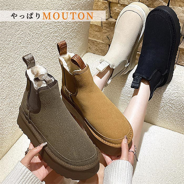 送料無料 冬新作 ムートンブーツ レディース シューズ 靴 ショートブーツ 裏ボア もこもこ 防寒 暖かい 保温 極暖 秋冬 防滑 痛くない おしゃれ サイドゴア ブーツ サイドゴアブーツ 大きいサイズ 裏起毛 ボア ファー 冬 くつ