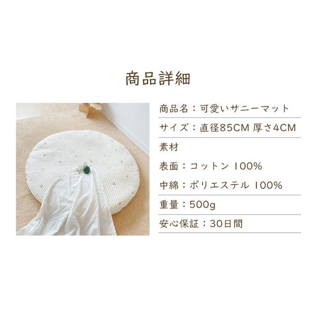 送料無料 冬新作 サニーマット ベビー 厚手版 85CM 洗える 月齢フォトマット ごろ寝 ベビーマット お昼寝マット 赤ちゃん ごろ寝アート 寝相アート よちよちマット プレイマット 韓国風 オールシーズン 爬行マット 出産祝い