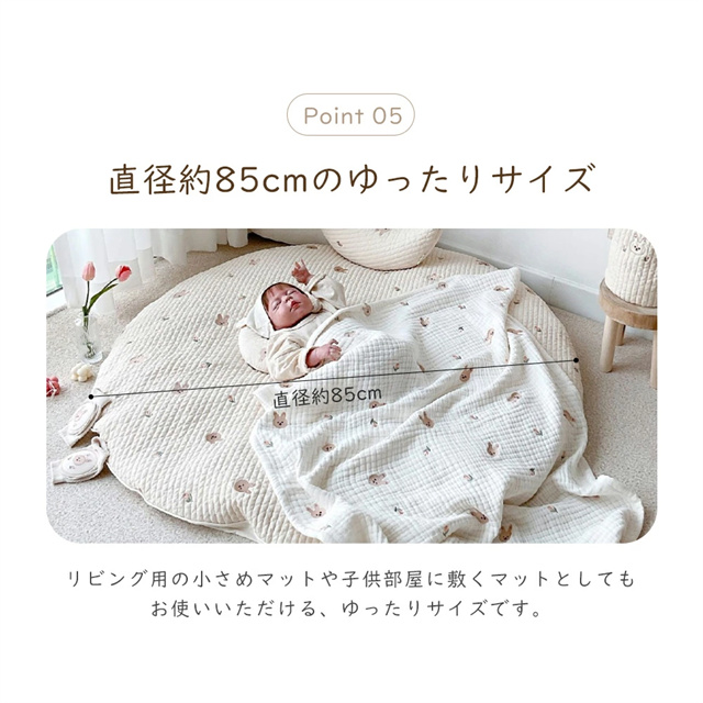 ラウンドマット ベビーマット お昼寝マット サニーマット イブル イブルマット 円形 洗える 綿 コットン ラグマット プレイマット キルティング 韓国風 オールシーズン ベビー 赤ちゃん 出産祝い 男の子 女の子