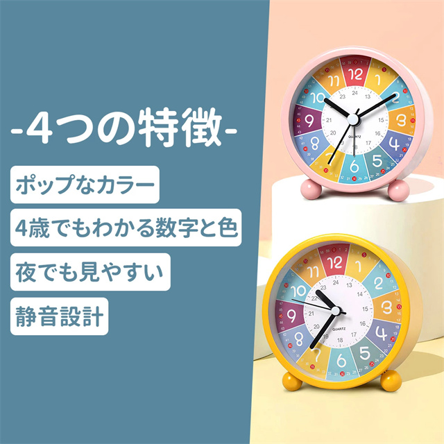 目覚し時計 知育 アナログ 知育時計 アラーム 子ども 子供 カラフル かわいい 可愛い プレゼント バックライト 置き時計 子供部屋 保育園 幼稚園 勉強 3歳 4歳 5歳 タイマー 卓上 女の子 男の子 時間 読める テレビ 目覚まし おしゃれ ピンク イエロー ブルー 目覚まし時計 知育目覚まし時計 時計 ツインベル 学生 寝室 ライト 北欧 シンプル 静音 起きれる アナログクロック 見やすい クロック リビング デザイン お洒落 雑貨 モダン 新生活 インテリア時計 音がしない 静か 入学 入園 卒業 卒園 記念