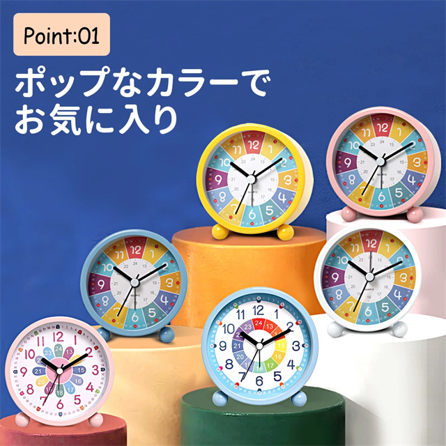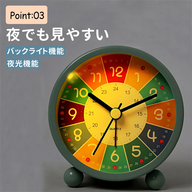 送料無料 春新作 目覚し時計 知育 アナログ 知育時計 アラーム 子ども 子供 カラフル かわいい 可愛い プレゼント バックライト 置き時計 子供部屋 保育園 幼稚園 勉強 3歳 4歳 5歳 タイマー 卓上 学生 寝室 おしゃれ 北欧 シンプル