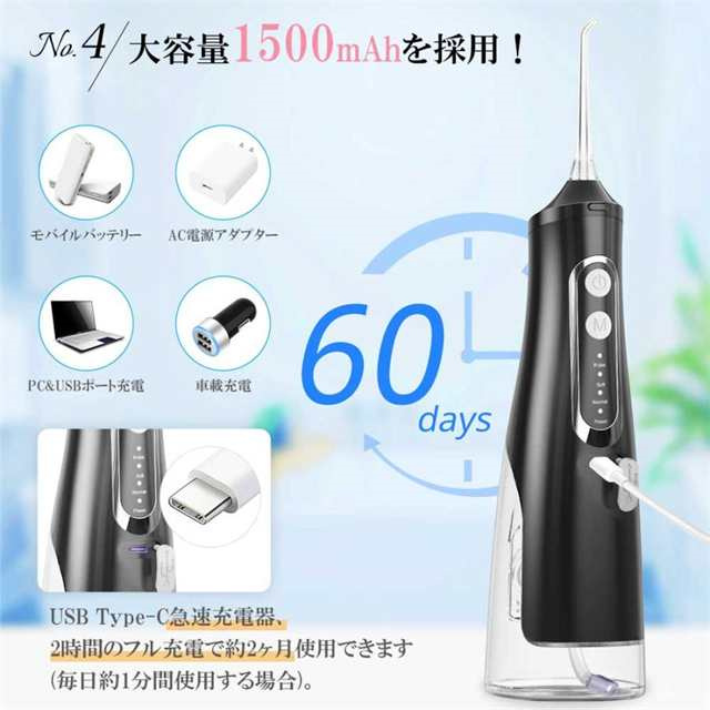 最安値挑戦 春新作 送料無料 新作 口腔洗浄器 マウスウォッシャー ジェットウォッシャー ウォーターピック コードレス口内洗浄機 歯間洗浄 充電式 大容量タンク