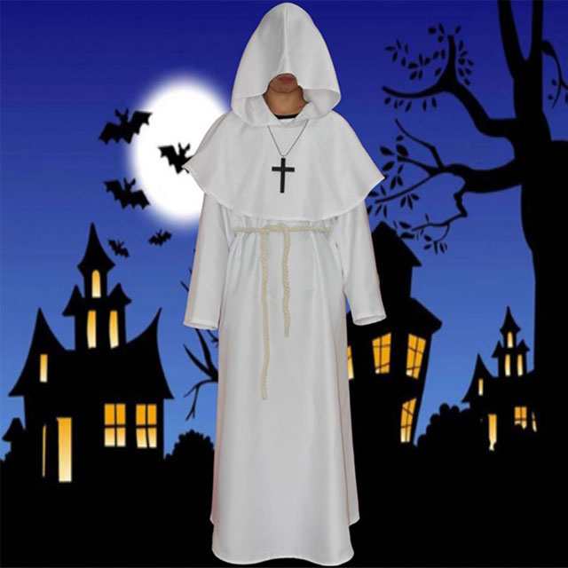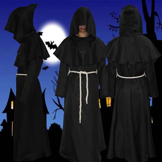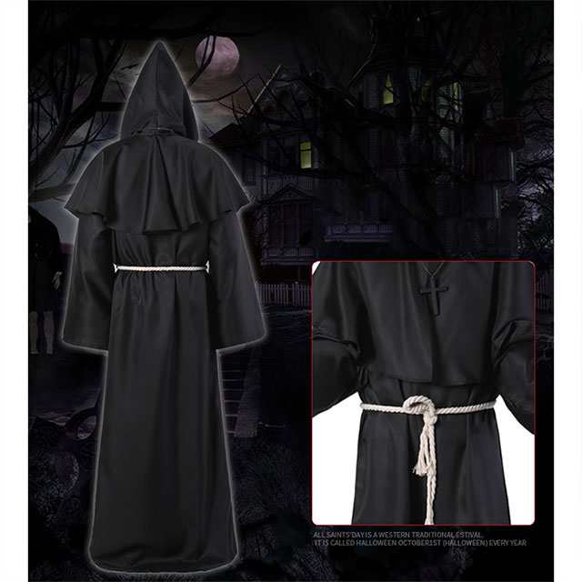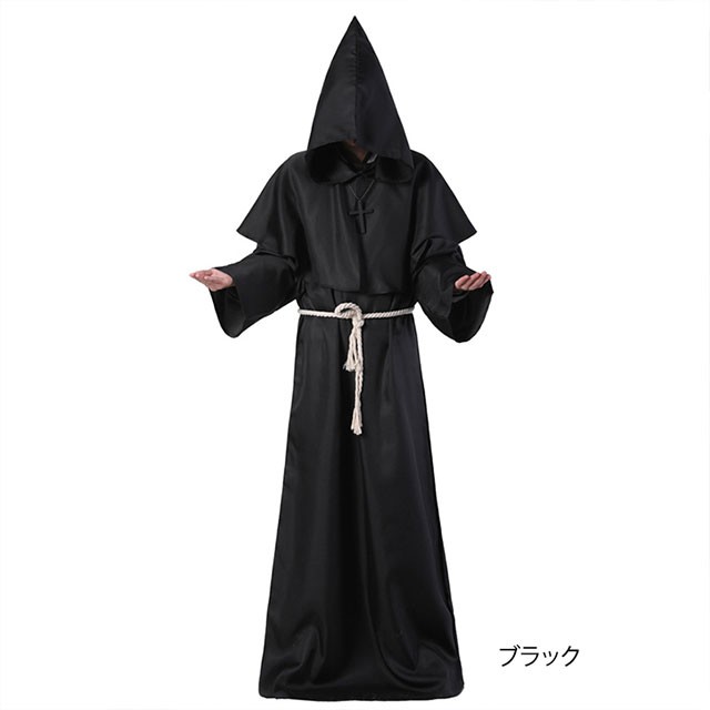 冬新作 新作 送料無料 ハロウィン コスプレ 子供 中世 ローブ 魔術師 牧師 3点セット 黒 白 十字架 マント クロスネックレス 僧侶 教団 衣装 大人 仮装 飾り コスプレ衣装 キッズ用 男の子 女の子 男性 女性 ファミリー 十字架 パーティー ステージ 劇 変装 宴会 余興