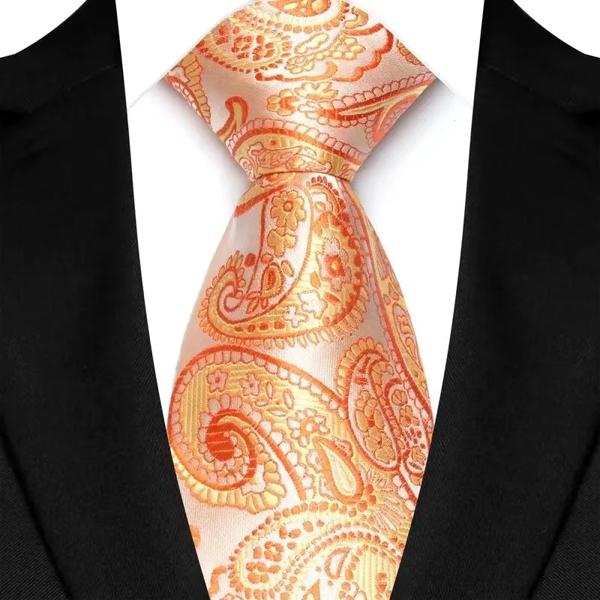 高級 8 センチメートルメンズネクタイオレンジブラウンカラー花ペイズリーネクタイ新郎ジャカード織ネクタイビジネスウェディングパーティー