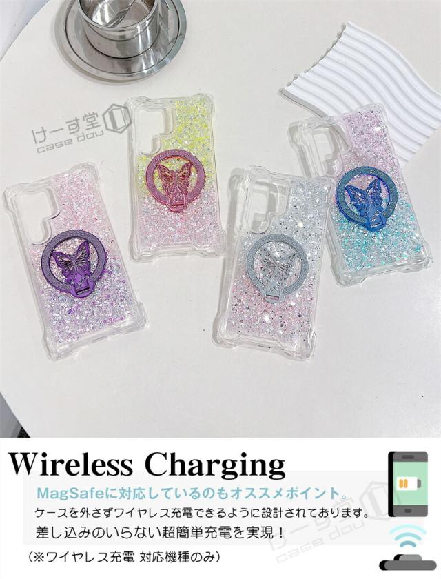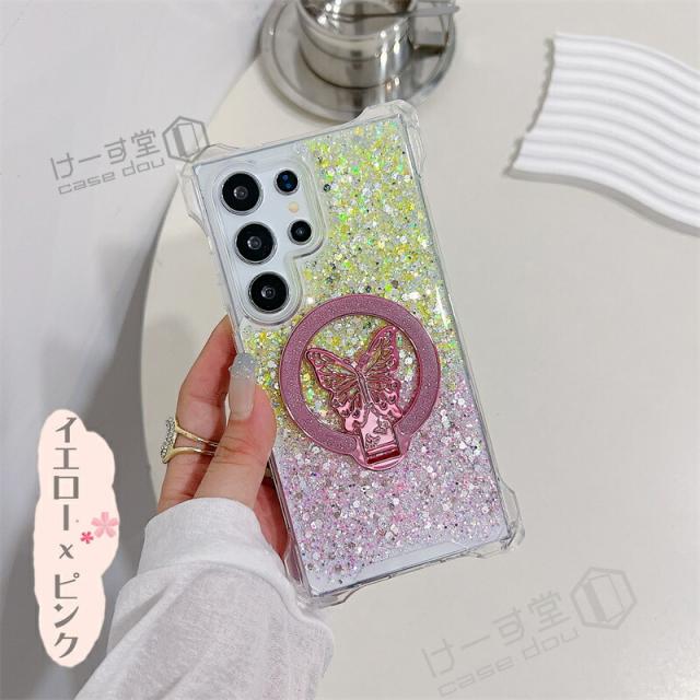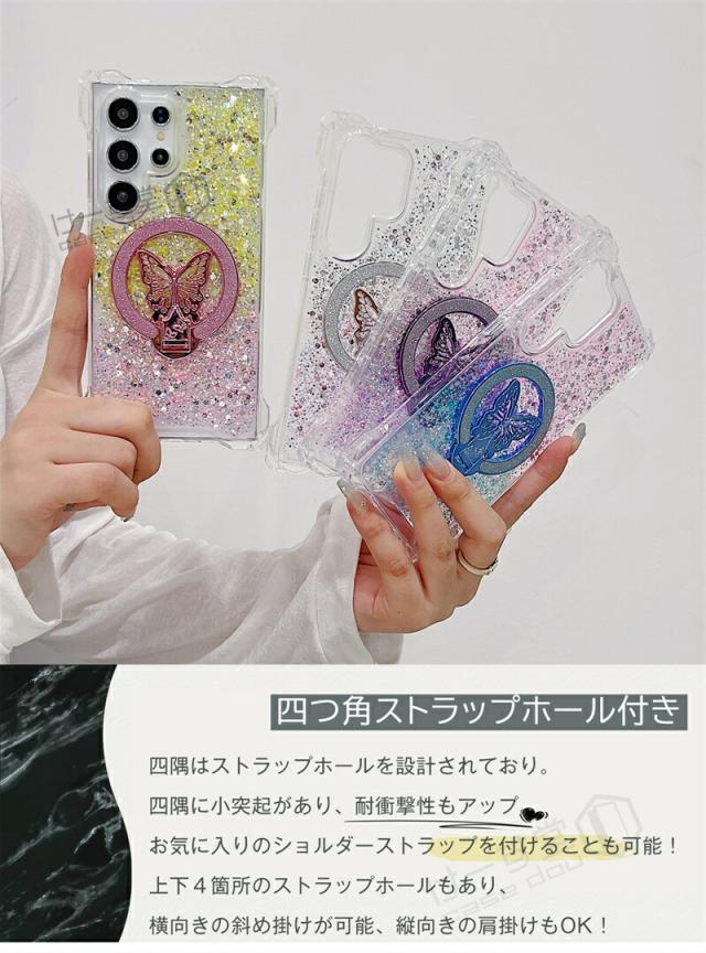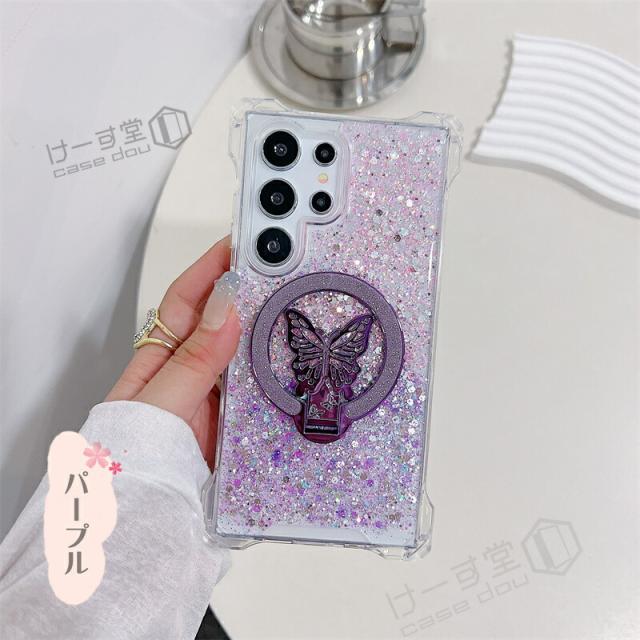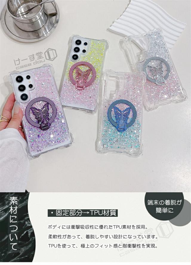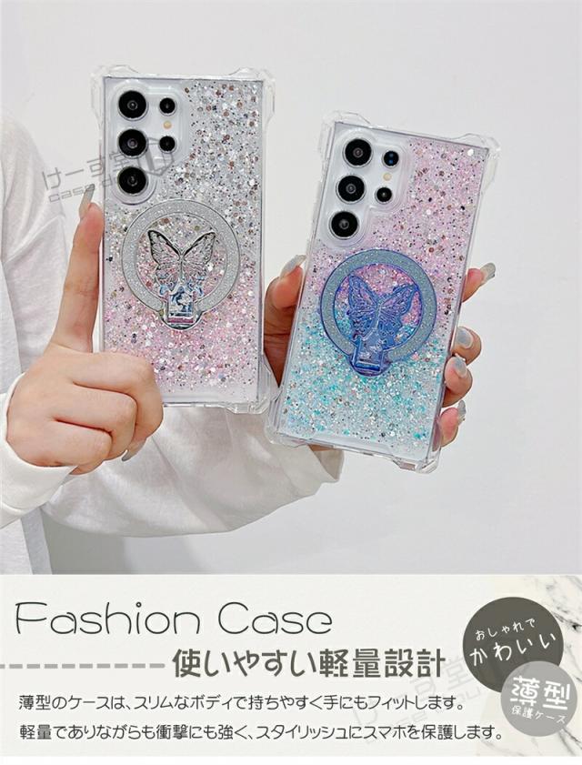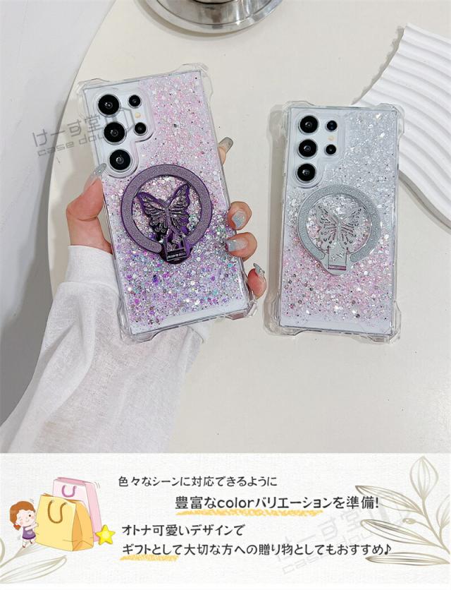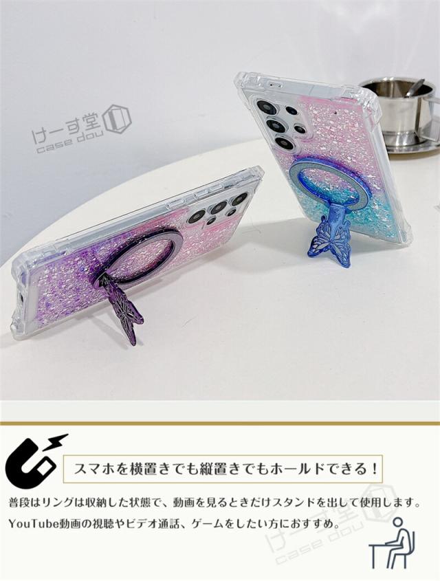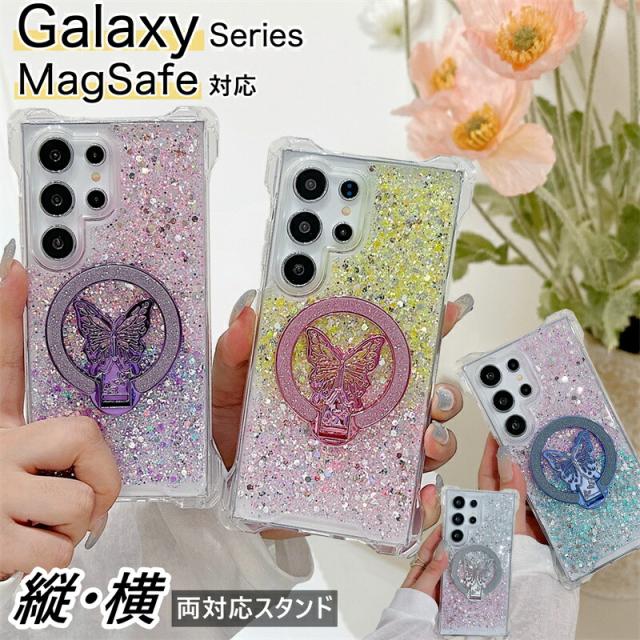 magsafe スタンド Galaxy S25 Ultra ケース 蝶のスタンド付き ケース GalaxyA52 GalaxyA53 GalaxyA54 GalaxyA55 5G 韓国スマホケース ギャラクシー S25 S24 S23 FE S22 Ultra ケース 可愛い スマホケース 耐衝撃 きらきらラ グリッター magsafe Galaxyケース グラデーション
