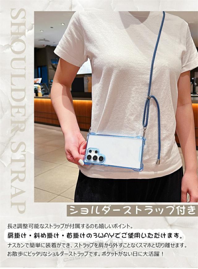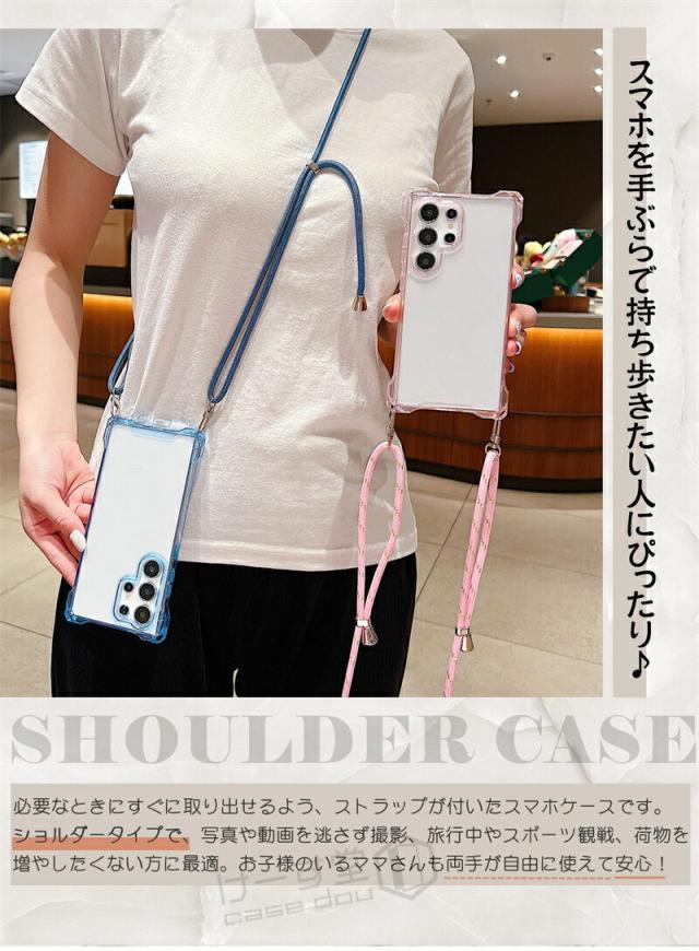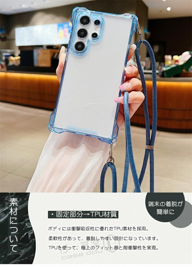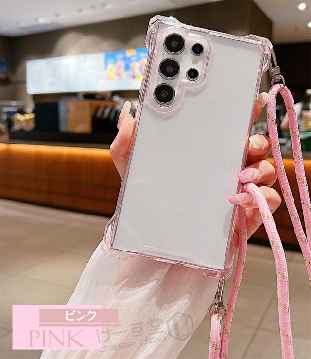 4つ角ショルダー Galaxy A55 5G ケース クリア かわいい 韓国 Galaxy S25 S24 Ultra S23 FE 5G ケース ショルダー Galaxy S24FE A52 S22 Ultra A55 A54 A53 5G ケース シンプル 大人 紐 スマホショルダー クリア 四つ角 ストラップホール付き ネックストラップ付き 首掛け