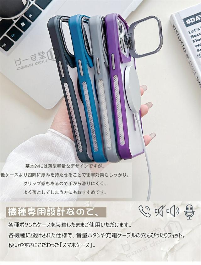 通気性 スタンド機能! iPhone16pro ケース マグセーフ クリア iPhone16 iPhone15 iPhone14Pro iPhone13 iPhone12 Pro Max iPhone11 ケース カメラ保護 スマホケース 大人 男性 メンズ アイホン16ケース mag safe ケース カバー クリアケース 大人おしゃれ MagSafe対応 放熱
