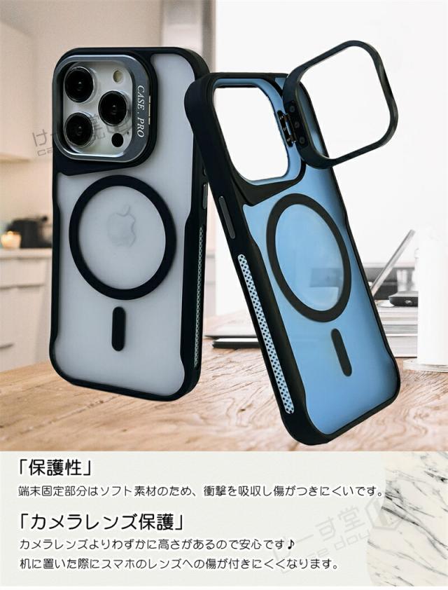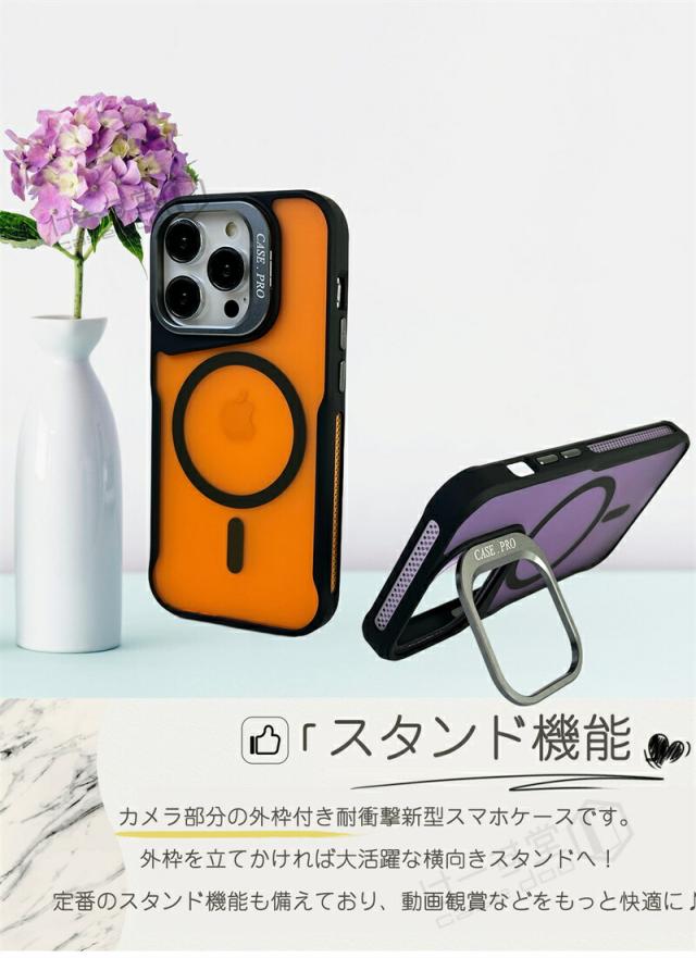 カメラレンズ保護 iPhoneケース iPhone16Pro iPhone14Pro ケース スタンド付き MagSafe充電対応 iPhone15 iPhone13 Pro 14 Plus iPhone12 Pro Max ハイブリッドケース マグネット搭載 強化 耐衝撃吸収 ソフトフレーム 脱着簡単 カメラ保護 かっこいい レンズ保護 送料無料