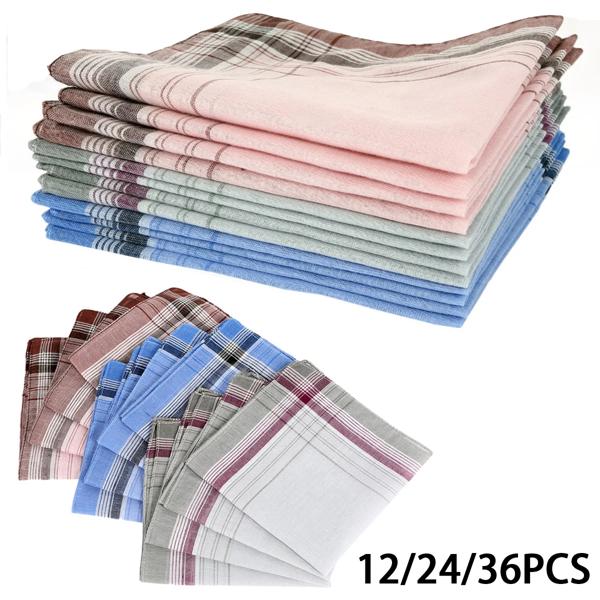 クラシックなスクエアチェック柄ストライプハンカチ、ポリエステルコットン、ポケットタオル、チェストスカーフ、結婚披露宴、ビジネス、12個、24個、36個