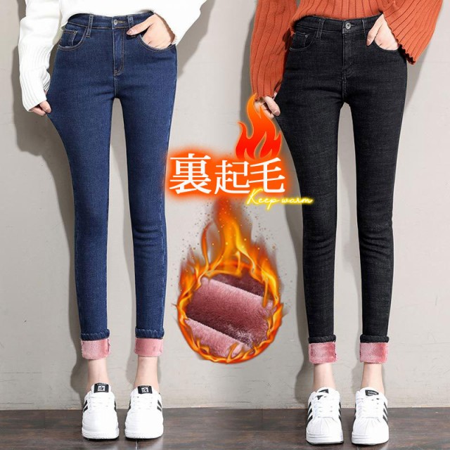 デニムパンツ レディース ジーンズ スキニー 裏起毛 ジーパン アウトドア 暖い 美脚 脚長 保温 防風 オシャレ カジュアル 秋冬