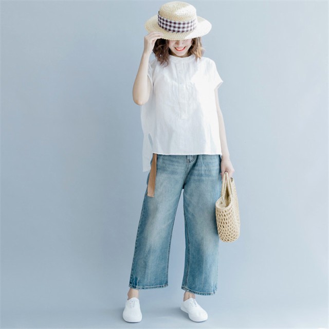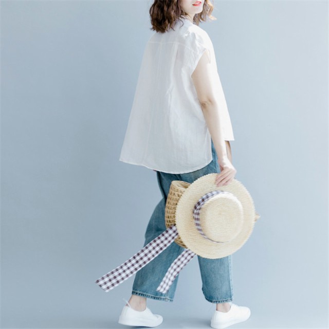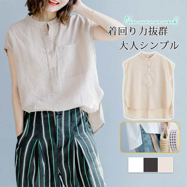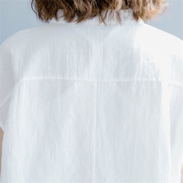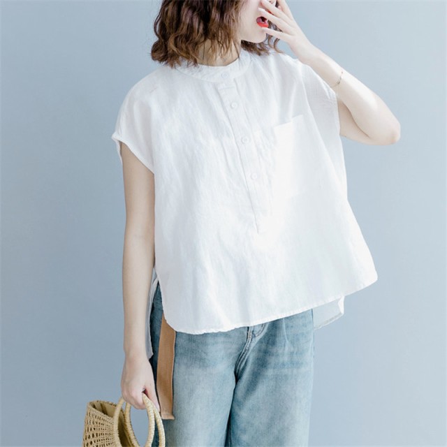 【ポイント5倍!】ブラウス シャツ 夏 半袖 レディース カジュアル ホワイト 体型カバー 春夏 リネン風 シンプル おしゃれ 通勤 トップス ゆっ