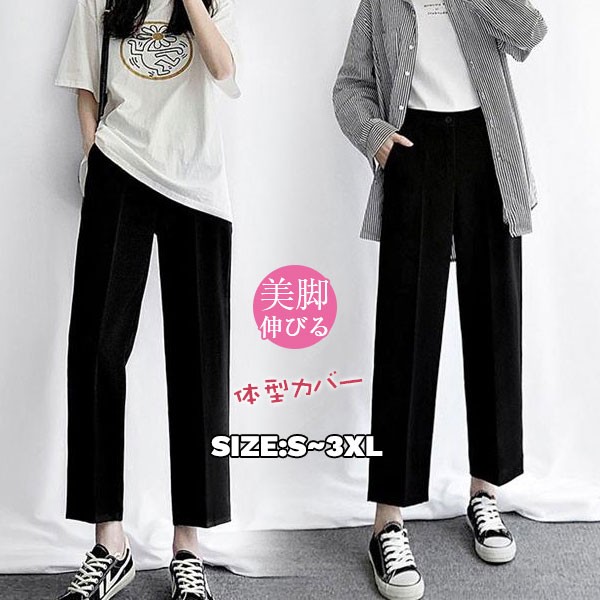 【ポイント5倍!】テーパードパンツ レディース ビジネス フォーマル 体型カバー 事務 制服 ブラック オフィス カジュアル ボトムス ブラック 春秋 通勤 美脚