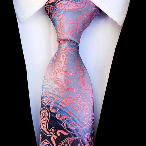 高級 8 センチメートルメンズネクタイピンクカラーソリッドストライプペイズリーネクタイ新郎ジャカード織ネクタイビジネスウェディングパーティー