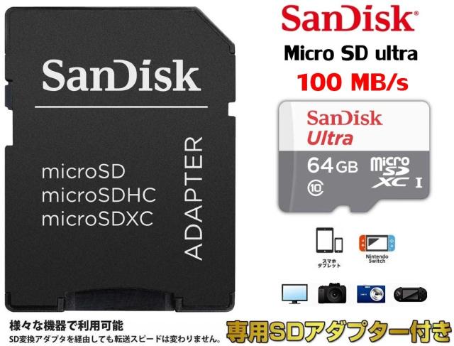 サンディスク microSDXC 64GB 100MB/s マイクロSDカード UHS-1カード 64g microSDカード SDSQUNR-064G-JN3GA ゲーム機に最適 フルHD録画メモリ SanDisk ウルトラ