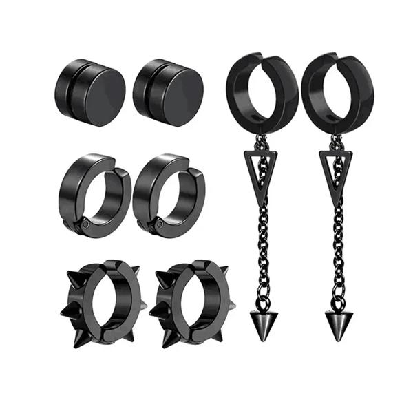 ファッショナブルなメンズ パンク クロス ペンダント ステンレススチール イヤーレス マグネット イヤリング セット 5 ペア