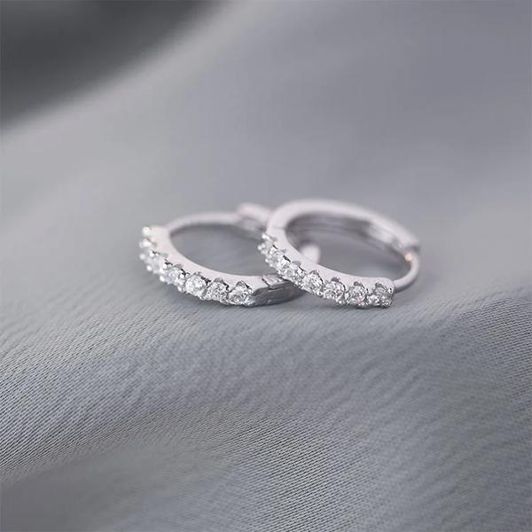 ラコル-男性と女性のための2列ジルコニアフープピアス 繊細なシルバーカラー 小さなハギー マルチサイズ トレンディ