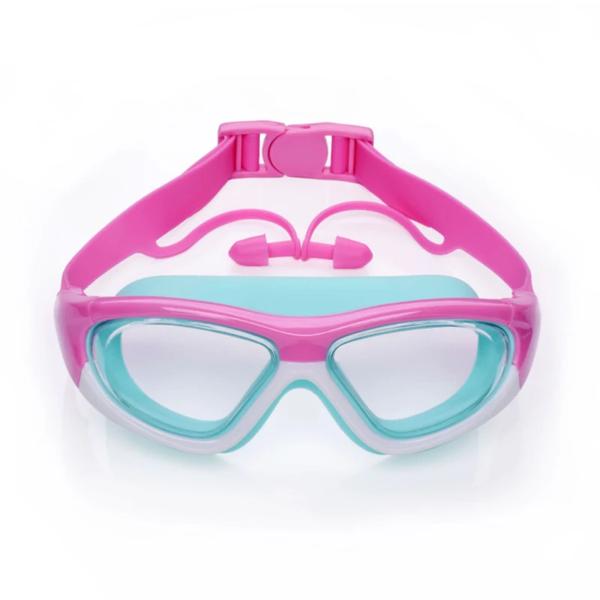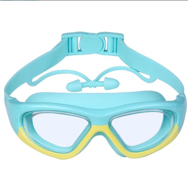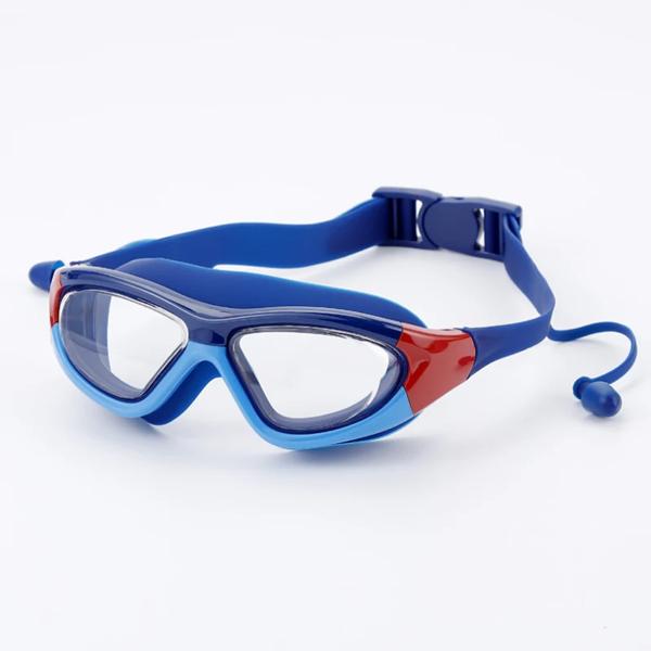 子供用高精細防水防曇水泳用大型フレームメガネ、便利なゴーグル、シリコン接続耳栓