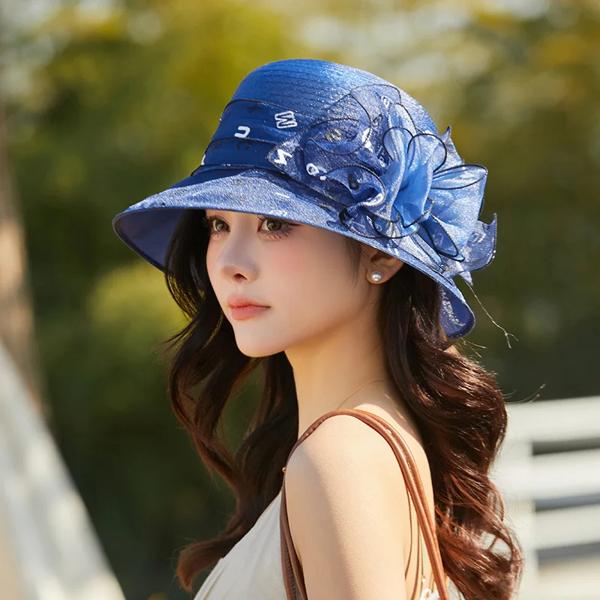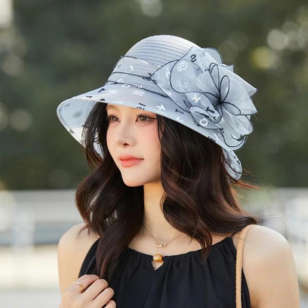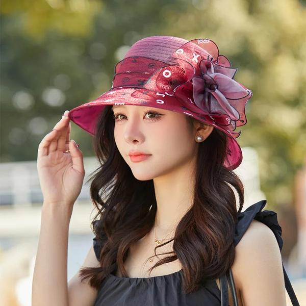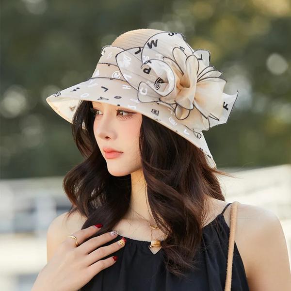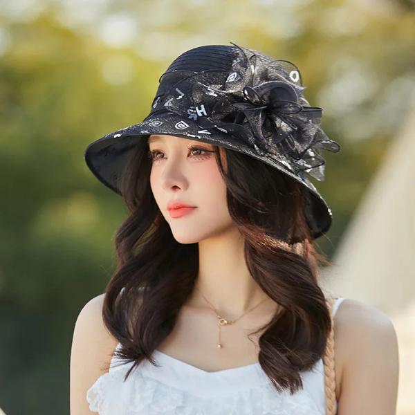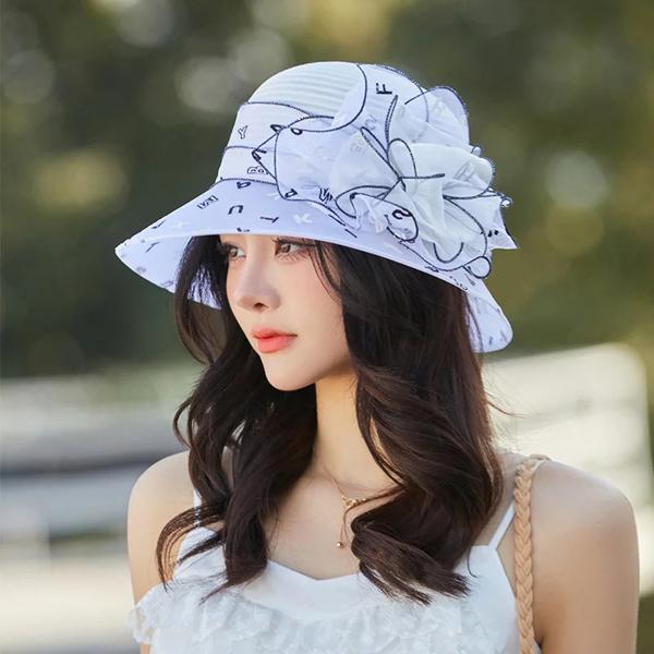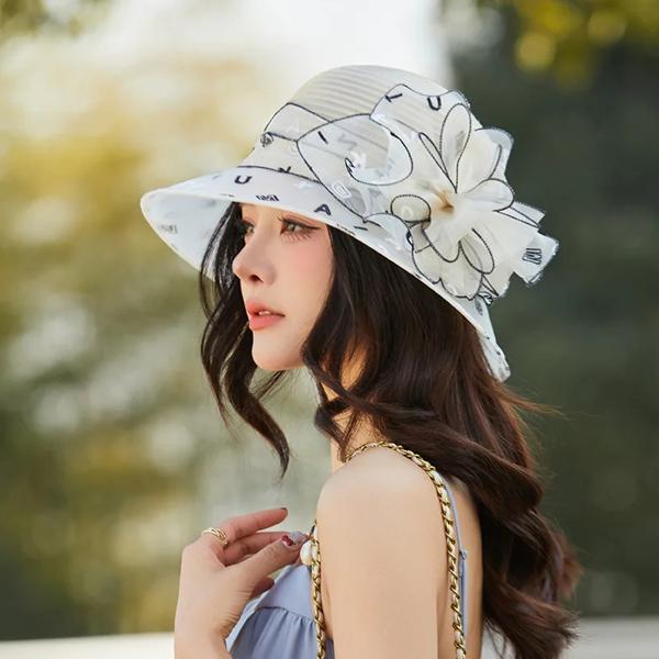 エレガントな夏の女性用サンハット、通気性のある織物の花柄、アウトドア活動に最適な糸素材