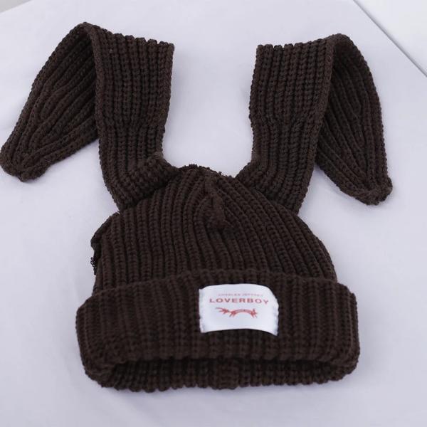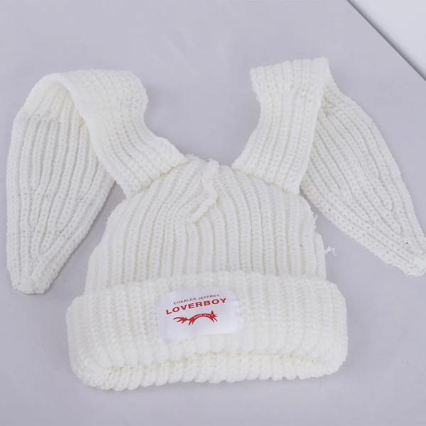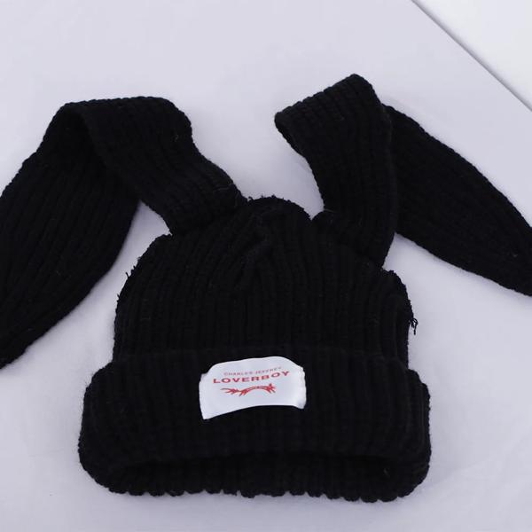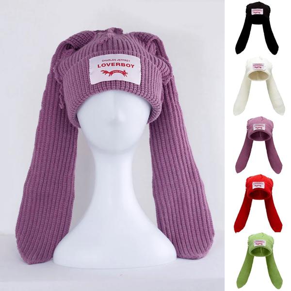 2024 冬 Skullies かわいい女性長い耳キツネの帽子かぎ針編みニット帽子衣装ビーニー帽子女性クリスマスギフトヒップホップキャップ